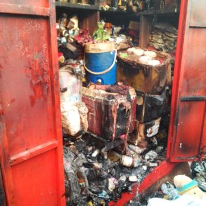 Le marché Sahara était la cible de ces hors la loi. Ayant soupçonnés une alerte de mouvement des élèves pour une revendication de cours la veille, les bandits passent à la vitesse supérieure et s’attaquent aux magasins et boutiques aux environs de 02 heures à 03heures du matin. Ils pillent et brigandent tous les magasins ciblés en bordure de route au marché Sahara. Acharnés en vain contre un magasin de transfert d’argent orange money, ces bandits se ruent sur le reste des boutiques tout en brulant des pneus sur les routes pour empêcher tout secours, afin de commettre leur forfaiture sous l’œil impuissants des voisins direct qui se sont réveillés la peur au ventre. Les flammes se propagent le long des bâtiments et atteignent un poteau électrique de 15.000 volts ; les services en charge du courant électrique de la CBG alertés parviennent à couper le courant pour éviter les dégâts.