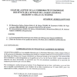 La requête de Cellou Dalein Diallo, Sidya Touré, Faya Milimouno, Abdourahmane Sanoh et compagnie a été enregistrée par le greffe de la Cour de justice de la CEDEAO le 24 février dernier. Voir copie.