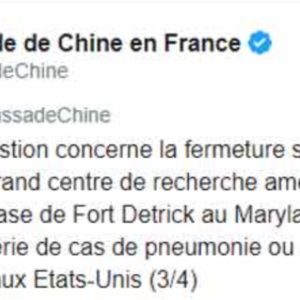 La deuxième question concerne la fermeture surprise en juillet dernier du plus grand centre de recherche américain d’arme biochimique, la base de Fort Detrick au Maryland. après la fermeture, une série de cas de pneumonie ou des cas similaires ont été apparus aux Etats-Unis (3/4)