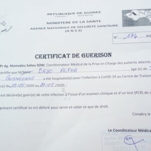 Je remercie d’abord, Dieu le tout puissant pour cette grâce, ensuite l’État guinéen pour la prise en charge médicale et surtout les médecins de tout corps confondu qui se sacrifient souvent afin de sauver des vies. Dans notre centre, il y avait deux cas graves, l’un a été transféré à Donka et l’autre a bénéficié des soins intensifs.