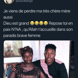 Je viens de perdre ma très chère mère aussi. Dieu est grand 😭😭😭😭 Repose toi en paix N’NA , qu’Allah t’accueille dans son paradis brave femme”