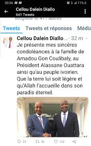 Le président de l’Union des Forces Démocratiques de Guinée (UFDG) Cellou Dalein Diallo, à travers sa page Facebook, et son Twitter a présenté ses condoléances, suite au décès du premier ministre ivoirien Amadou Gon Koulibaly, ce mercredi 8 juillet à Abidjan, des suites d’une crise cardiaque.« Je présente mes sincères condoléances à la famille de Amadou Gon Coulibaly, au Président Alassane Ouattara ainsi qu’au peuple ivoirien. Que la terre lui soit légère et qu’Allah l’accueille dans son paradis éternel». A écrit le leader de l’UFDG.