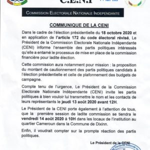 Guinée présidentielles 2020 : Communiqué de la CENI (Copie) Politique Par Frère Bah Le 11 Août, 2020 | 20 h 37 min Partager GOM A lire aussi : Guinée : promotion exceptionnelle dans l’armée –… 13 Avr, 2026 | 21 h 49 min Conakry prend la tête de deux institutions stratégiques… 12 Avr, 2026 | 11 h 06 min Post Views: 592 Partager :FacebookXJ’aime ça :J’aime chargement… Articles similaires Partager