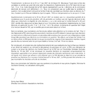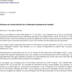 A préciser que pour la FIFA si la FEGUIFOOT procède aux élections du comité exécutif le 18 mai 2021, elle (la FIFA) pourrait être amenée à ne pas reconnaitre les résultats issus de cette assemblée générale.