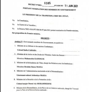 La liste du nouveau gouvernement de Choguel Kokalla Maiga Afrique Par Frère Bah Le 11 Juin, 2021 | 16 h 46 min Partager A lire aussi : Côte d’Ivoire : Ouattara démarre son 4e mandat en… 8 Déc, 2025 | 16 h 22 min Burkina Faso : le gouvernement rétablit la peine de mort… 6 Déc, 2025 | 7 h 56 min Ami Maïga Post Views: 540 Partager :FacebookXJ’aime ça :J’aime chargement… Articles similaires Partager