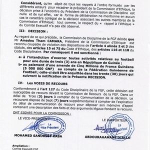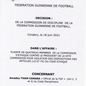 FEGUIFOOT: Amadou Tham suspendu par la commission de discipline (copies) Sport Par Frère Bah Le 18 Juin, 2021 | 20 h 58 min Partager A lire aussi : Ligue des champions : Serhou Guirassy entre dans l’histoire… 25 Nov, 2025 | 23 h 31 min Ballon d’Or africain 2025 : la mise à l’écart de Serhou… 17 Nov, 2025 | 9 h 46 min Alas Toure Post Views: 400 Partager :FacebookXJ’aime ça :J’aime chargement… Articles similaires Partager