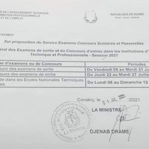 Le concours d’entrée dans les écoles de l’enseignement professionnel et techniques aura lieu quand à lui du 06 au 12 septembre 2021.