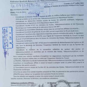 Le dépôt d’avis de grève à été déposé hier mercredi 7 juillet 2021 auprès du ministre de la Fonction publique et du Travail, a-t-on appris.