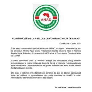 Arrestation de Thierno Yaya Diallo et de Bogola Haba : L’ANAD condamne et exige leur libération sans condition (communiqué)