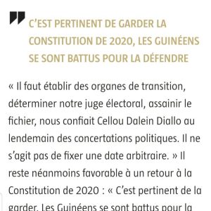 Faux ! Cellou Dalein est plutôt favorable à la constitution de 2010 et celle de 2020 comme l’a annoncé jeuneafrique.