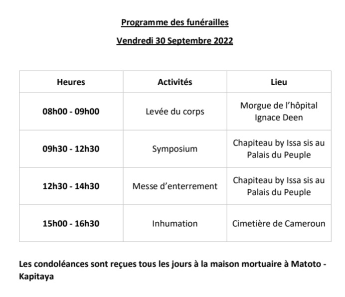 Décédé hier mardi 27 septembre 2022, l’ancien président de l’assemblée nationale Guinéenne sous l’air Alpha Condé, Honorable Kory Kondiano sera inhumé le vendredi 30 septembre 2022, à Conakry au cimetière de Cameroun.