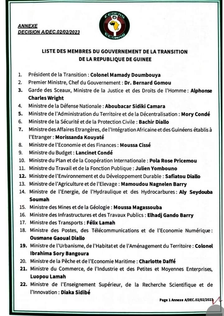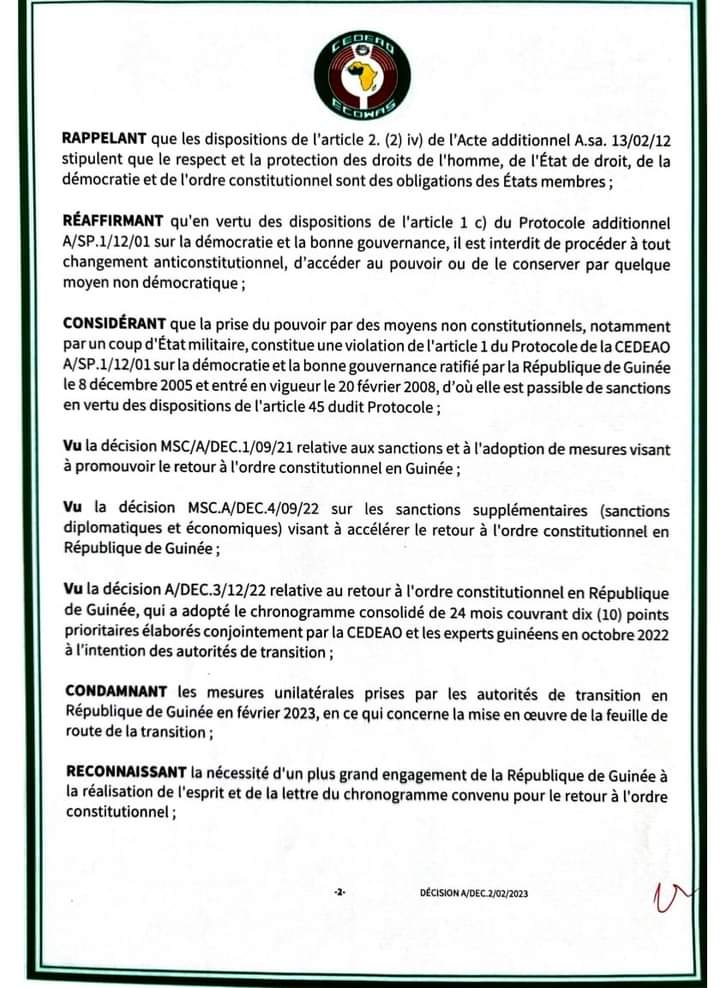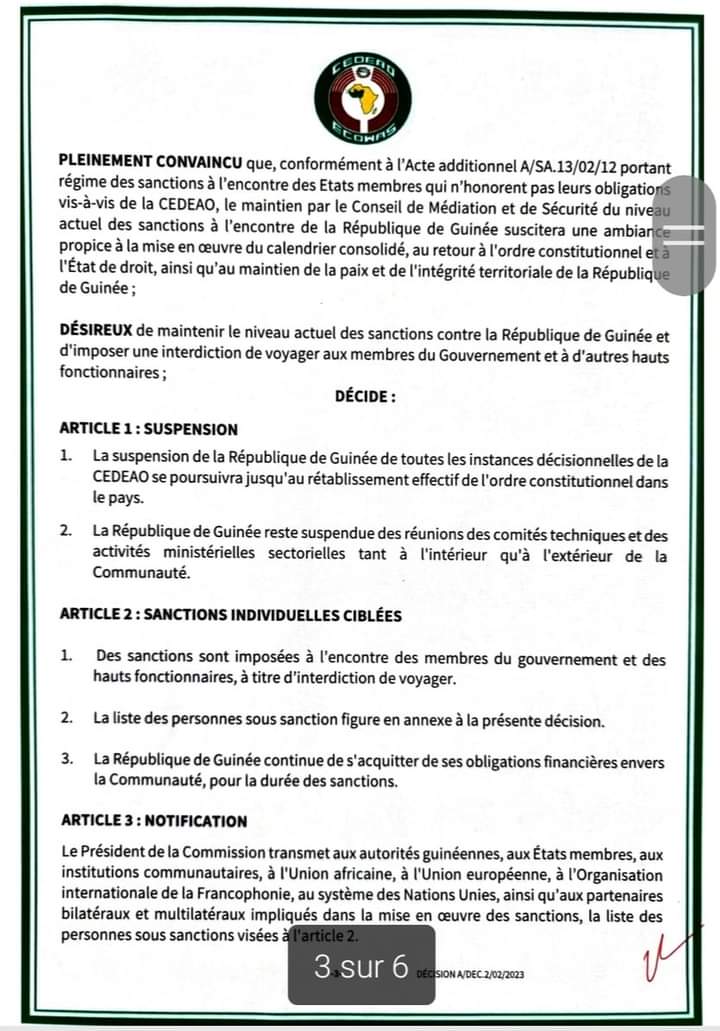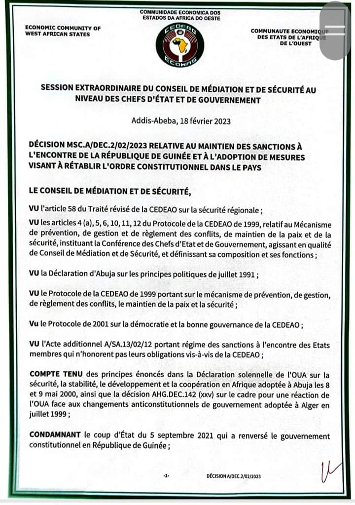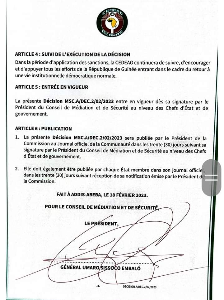 La CEDEAO exécute sa décision contre le pouvoir militaire deConakry