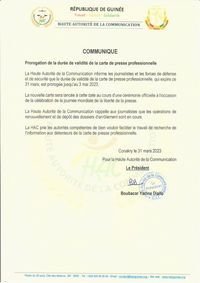Guinée : la HAC proroge la durée de validité de la carte de presse professionnelle