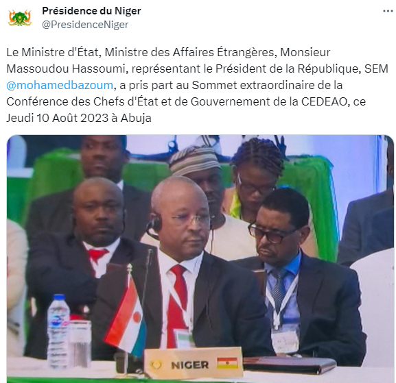 A travers le compte twitter de la présidence du Niger sous Bazoum, nous lisons :