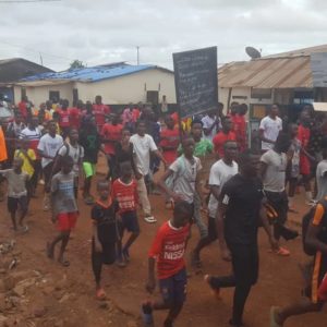 Gbessia cité de l’air les jeunes dans la rue pour revendiqué une cause commune, l’objectif est entre autre l’obtention d’un terrain de football et une maison des jeunes.