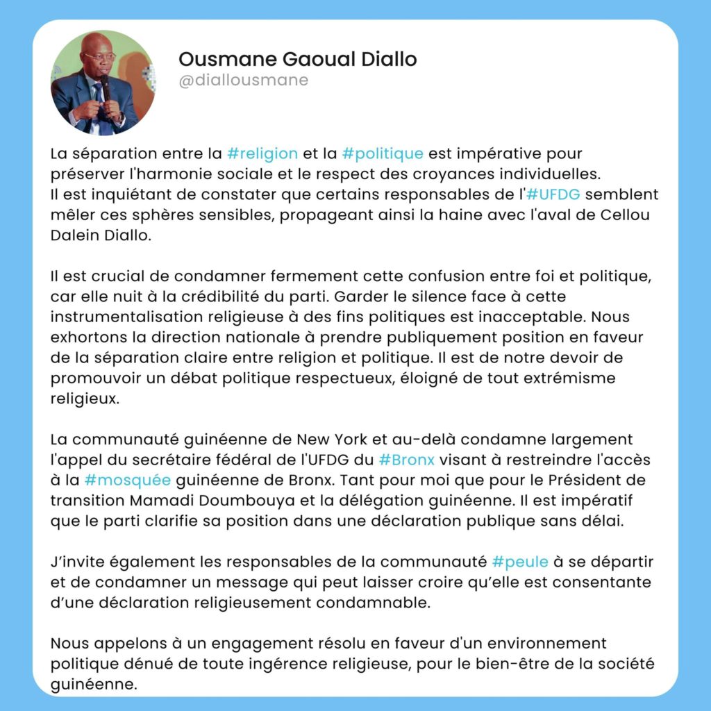 Séparation entre la religion et la politique : en 5 points, le citoyen Djani Alpha repond au ministre Gaoual