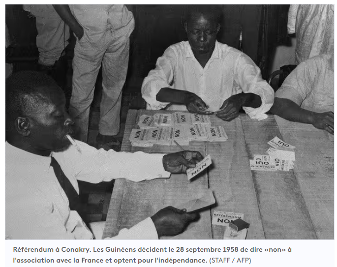 Chaque peuple, chaque pays, chaque Nation à une histoire, et est issue d’une histoire. 65 ans après jours pour jours, La Guinée célèbre ce jour 28 septembre 2023 la 65 è année de puis son premier pas de la marche officielle de son indépendance. Ainsi, la Guinée sous le leadership d’Ahmed Sékou Touré est devenue le premier pays d’Afrique subsaharienne à devenir indépendant de la France, après avoir voté «non» le 28 septembre 1958 au référendum instituant une «communauté» franco-africaine, proposée par le général de Gaulle. Avant ce vote, le Général et président français avait effectué un périple en terre africaine pour défendre son idée de communauté avec la France. Retour sur ces événements.