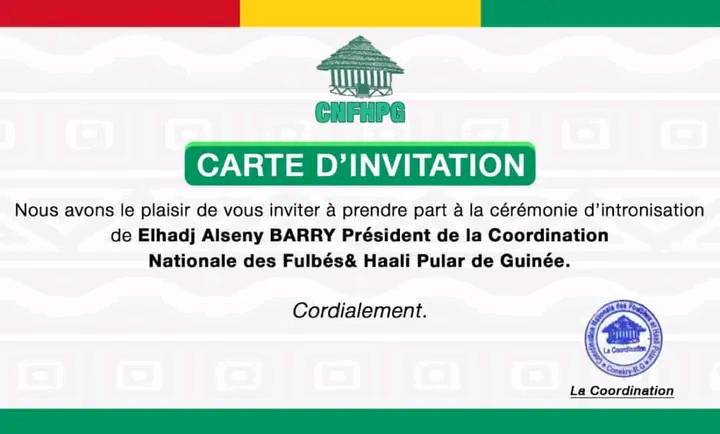 A la tête de la Coorination des Fulbès et Haali Pullar depuis le décès Elhadj Sans Loi, Elhadj Alseny Barry sera investit le 22 octobre prochain à Conakry, au palais du Peuple à partir de 11H précise. Une annonce faite par le service de Communication de ladite coordination.