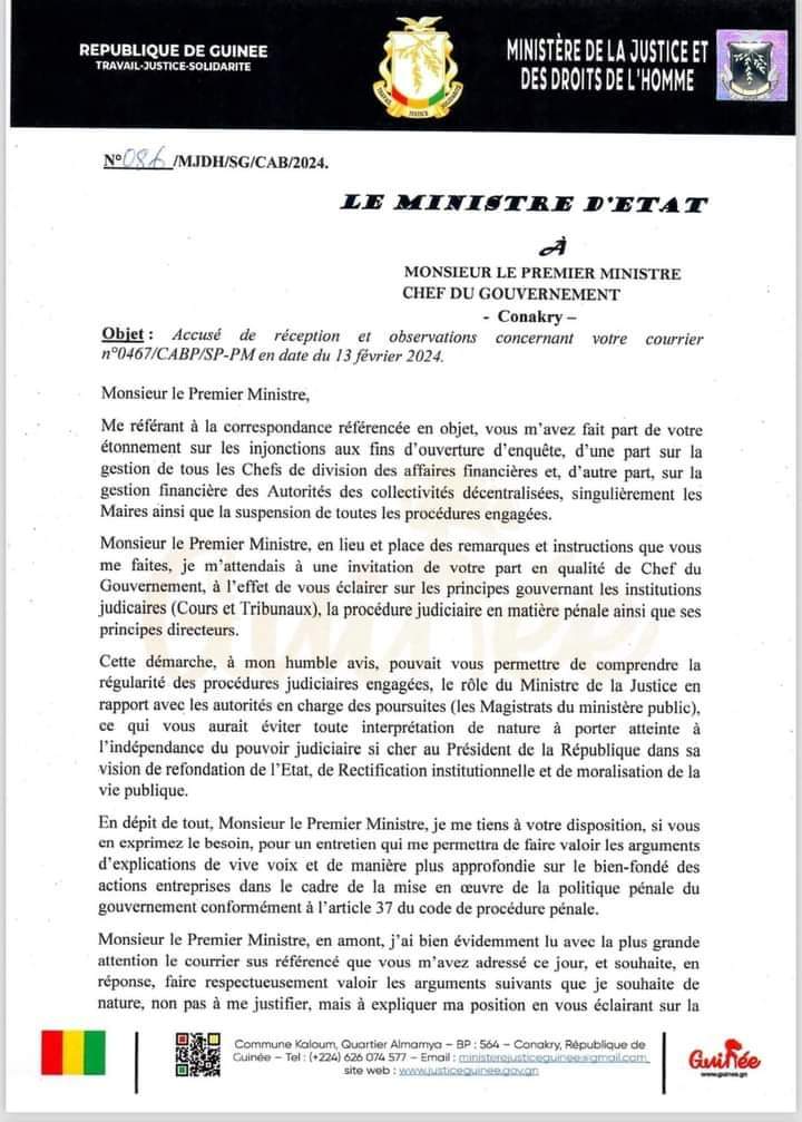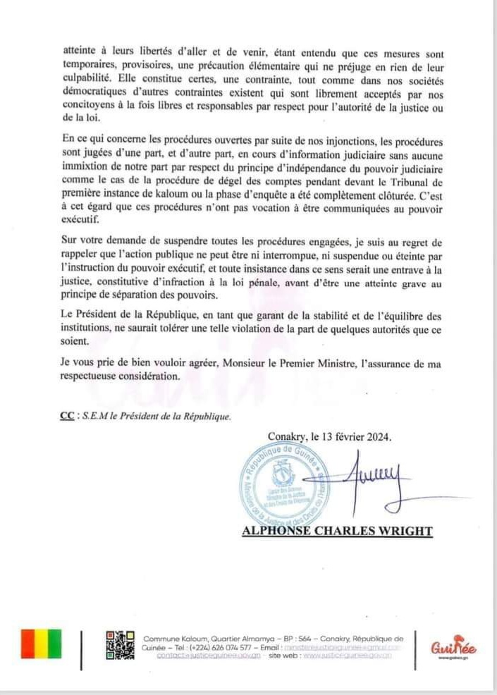 Crise au sommet de l’Etat Guinéen : Alphonse Charles Wright répond au premier ministre Dr Bernard Goumou (Copies) Politique Par Hassane Le 13 Fév, 2024 | 22 h 55 min Partager Post Views: 1 330 A lire aussi : Conakry : Doumbouya exige à son ministre un assainissement… 4 Déc, 2025 | 11 h 32 min Réaménagement stratégique : la police nationale connaît un… 3 Déc, 2025 | 23 h 28 min Partager :FacebookXJ’aime ça :J’aime chargement… Articles similaires Partager