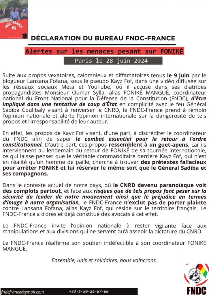 Accusation contre Fonikè Menguè : le FNDC France n’exclut pas de porter plainte contre Kayz Fof (Déclaration) DROIT & JUSTICEsociété Par Hassane Le 28 Juin, 2024 | 19 h 13 min Partager Post Views: 1 177 A lire aussi : Départ à haut risque : des Guinéens empruntent une nouvelle… 5 Déc, 2025 | 15 h 42 min Mobilisation nationale pour l’assainissement : le… 5 Déc, 2025 | 13 h 47 min Partager :FacebookXJ’aime ça :J’aime chargement… Articles similaires Partager