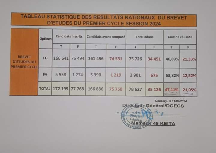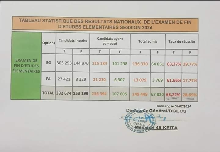 Le service des examens à travers le ministère de l’éducation nationale a publié les statistiques des examens du CEE 63% et BEPC 47%. La publication officielle est prévue pour ce samedi 13 juillet 2024 sur toute l’étendue du territoire national.