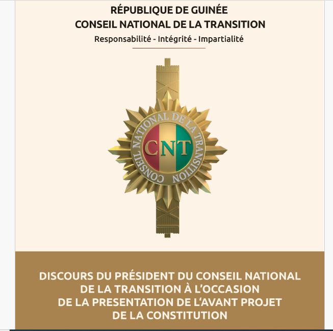 L’avant projet de la nouvelle constitution : le discours intégral du président du CNT, Dr Dansa Kourouma Par Morlaye Damba Politique Par Frère Bah Le 29 Juil, 2024 | 18 h 15 min Partager DISCOURS avant projet consititution 29 Juillet 2024 A lire aussi : Guinée : Cellou Dalein sonne l’alarme : “La démocratie… 6 Déc, 2025 | 23 h 35 min Présidentielle en Guinée : l’appel de Yéro Baldé… ignoré par… 6 Déc, 2025 | 9 h 51 min Post Views: 1 013 Partager :FacebookXJ’aime ça :J’aime chargement… Articles similaires Partager
