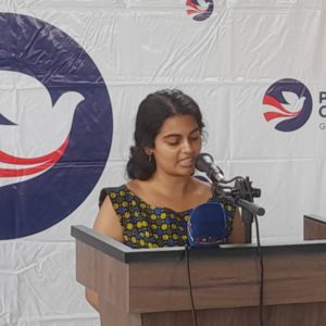 ” De la féconde collaboration entre Guinéens et Américains.Votre présence ici témoigne la solidité du partenariat qui nous unit depuis longtemps.Ce groupe de quatre volontaires enseignants vient renforcer les efforts des onze autres professeurs de maths et de sciences qui servent dans les écoles secondaires de la Guinée profonde, où le manque d’enseignants se fait toujours sentir.La représentante des volontaires du corps de la paix, Urmi Choudhary nous avons hâte de commencer notre défi,quitté du braqueur semble presque surréaliste pour nous.