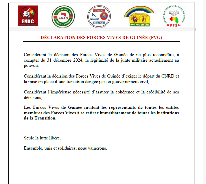 DÉCLARATION DES FORCES VIVES DE GUINÉE 15 janvier 2025