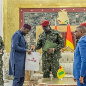 En séjour en terre de Guinée dans le cadre d’une visite de travail, le Premier ministre du Sénégal, Ousmane SONKO, a eu tous l’honneurs nécessaires auprès des autorités Guinéennes. Une coutume d’ailleurs qu’elle s’est arborée depuis son accession à l’indépendance. Ce lundi 2 juin 2025, Ousmane Sonko, en compagnie de son homologue Guinéen, et les membres de sa délégation, le Général Amara CAMARA, et du Ministre Secrétaire général du Gouvernement, Bénoit KAMANO, ont été reçus par le Général président Mamadi Doumbouya.