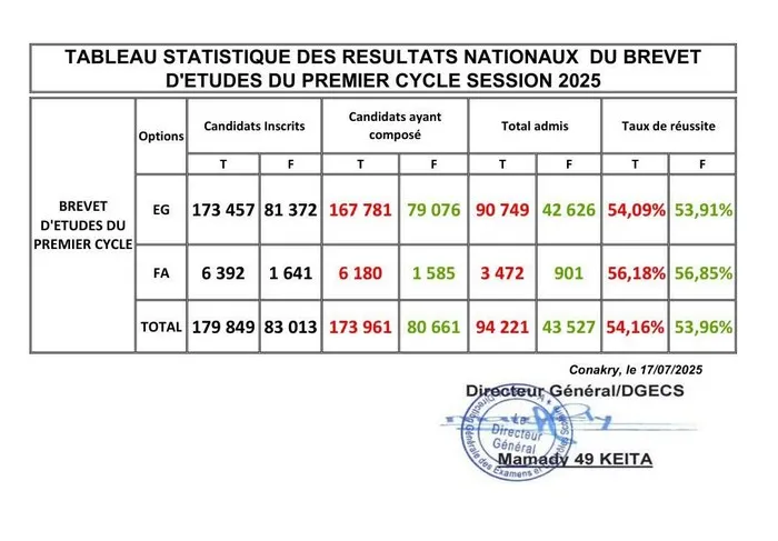 Après les candidats de l’examen de fin d’études élémentaires (CEE), autour de ceux du Brevet d’Études du Premier Cycle (BEPC), d’être fixé sur leur sort par le Ministère de l’Enseignement Pré-Universitaire et de l’Alphabétisation (MEPUA), qui a rendu public les resultats de l’examen session 2025.