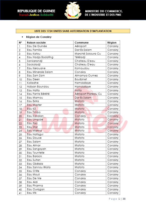 Guinée : liste de 1 724 unités industrielles retirés du marché national par le ministère du commerce