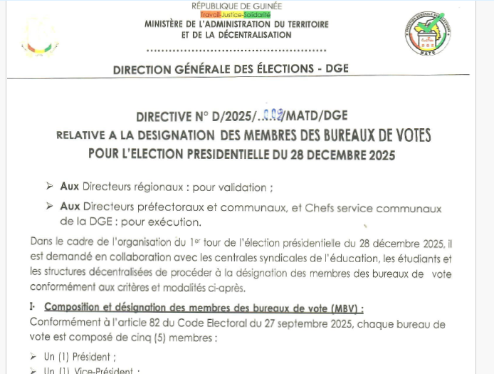 Élection présidentielle 2025 la DGE clarifie les modalités de fonctionnement des bureaux de vote