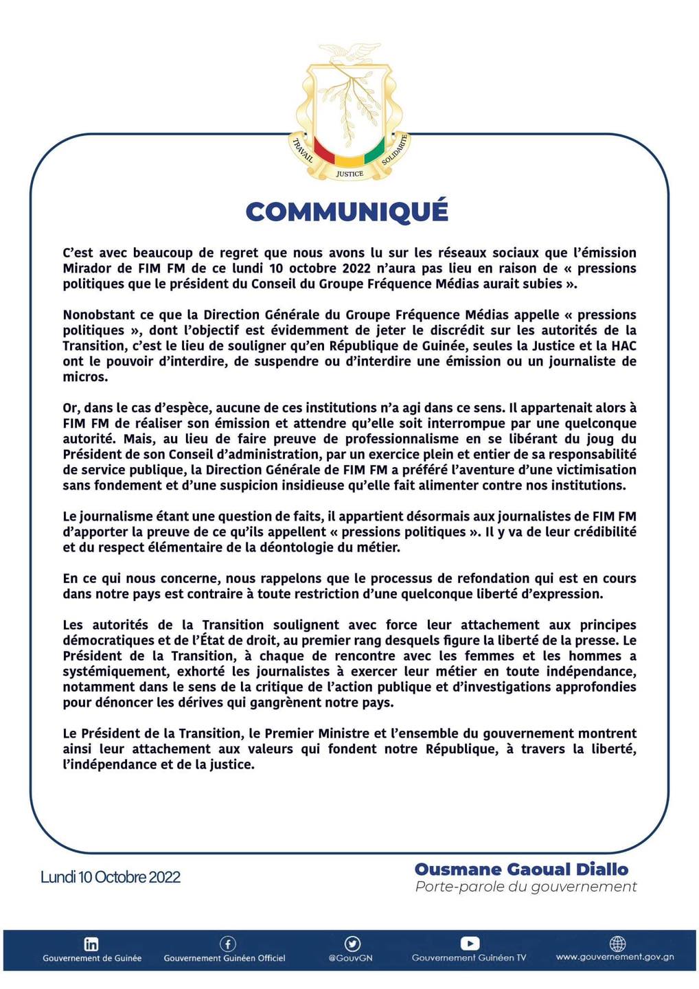 Annulation de l’émission de Mirador de Fim: les autorités Guinéennes regrettent et déments le communiqué du GFM (communiqué)