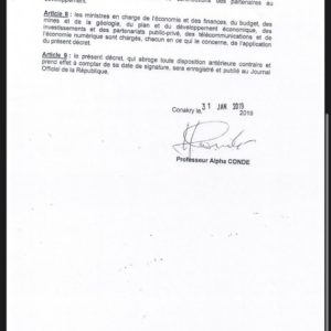 Ci-dessous, le décret de la création de MAMRI par l’ancien président Guinéen, le professeur Alpha Condé.